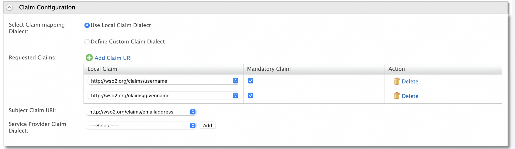 Claim configuration : wso2 local claim will be used. Givenname and emailaddress need to be added.