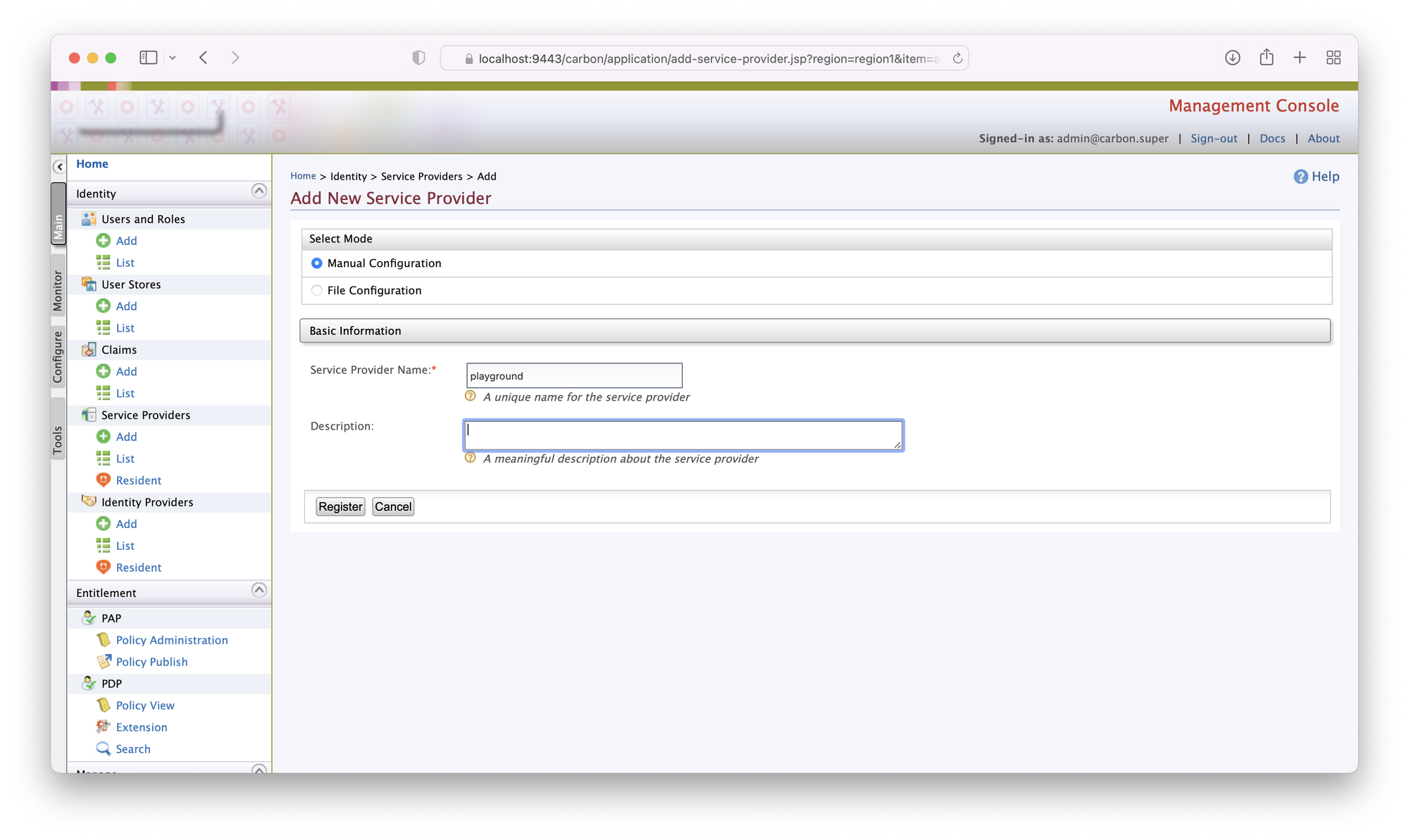 - Start the WSO2 Identity Server and go to https://localhost:9443/carbon to access management console.