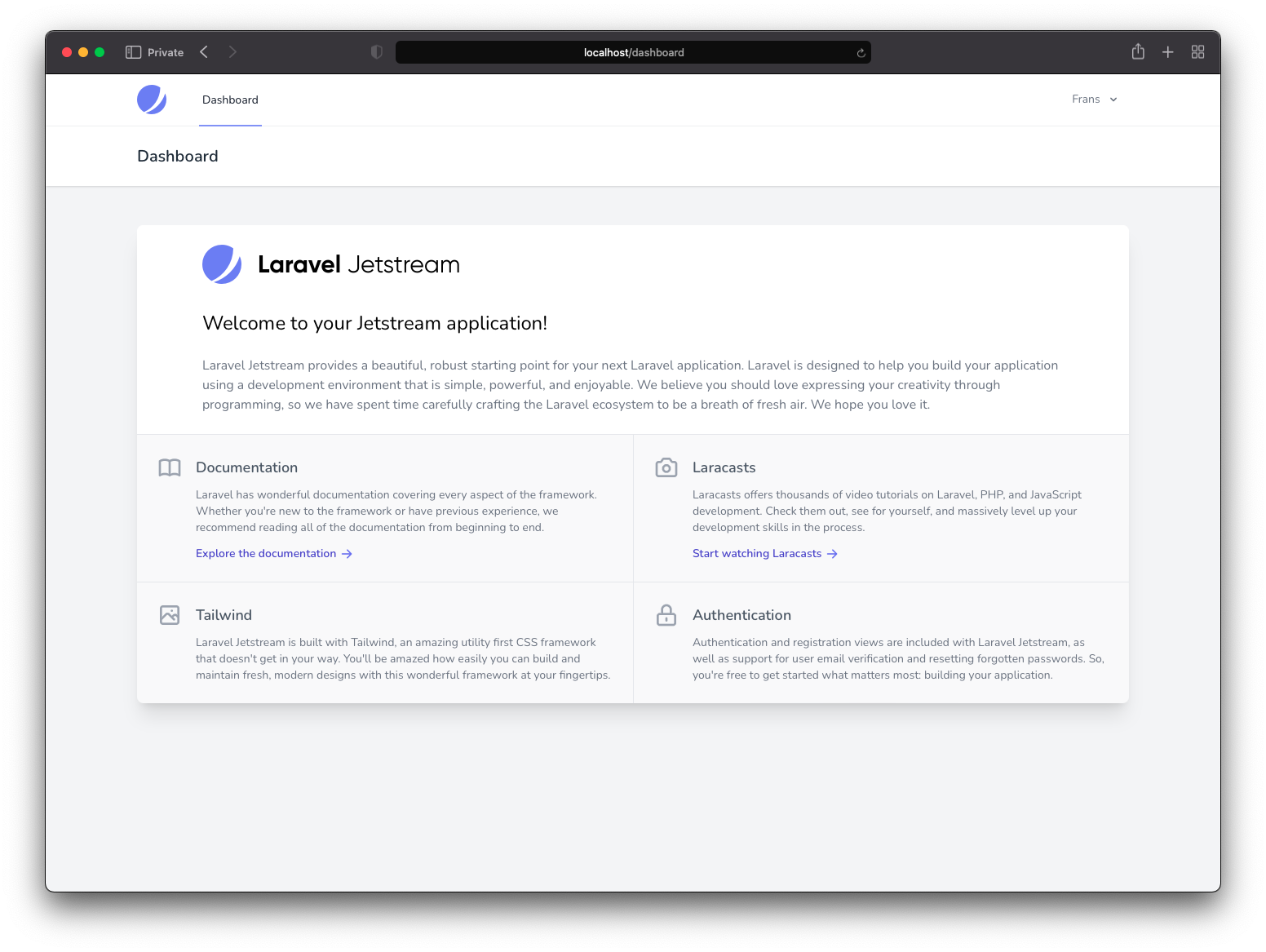 composer require laravel/jetstreamAfter installing the Jetstream package, you may execute the jetstream:install Artisan command. This command accepts the name of the stack you prefer (livewire or inertia). I prefer livewire.